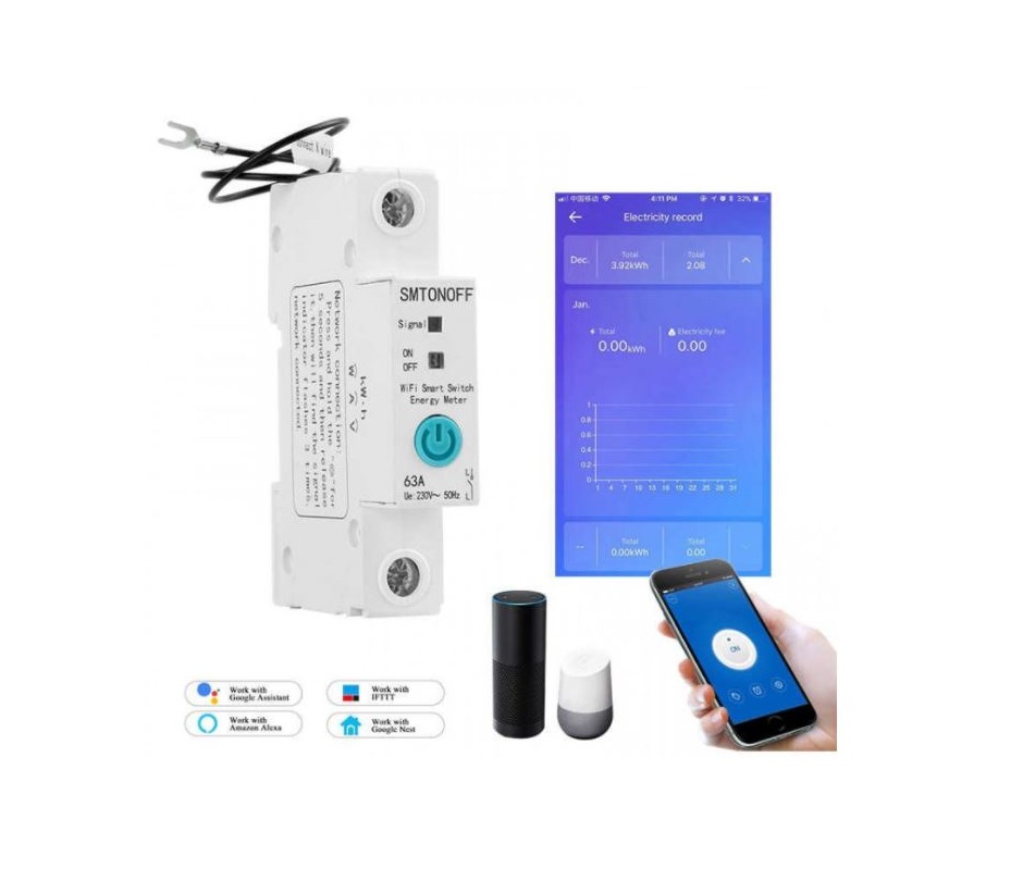 This device has a max load of 63A with a normal load of 40A, which is perfect to control your geyser and assess how much power is being consumed. You can set this device to automatically switch off your geyser during peak times and switch it back on during off peak times. Once connected, you can control it with your phone or voice assistants like Alexa or Google Home.